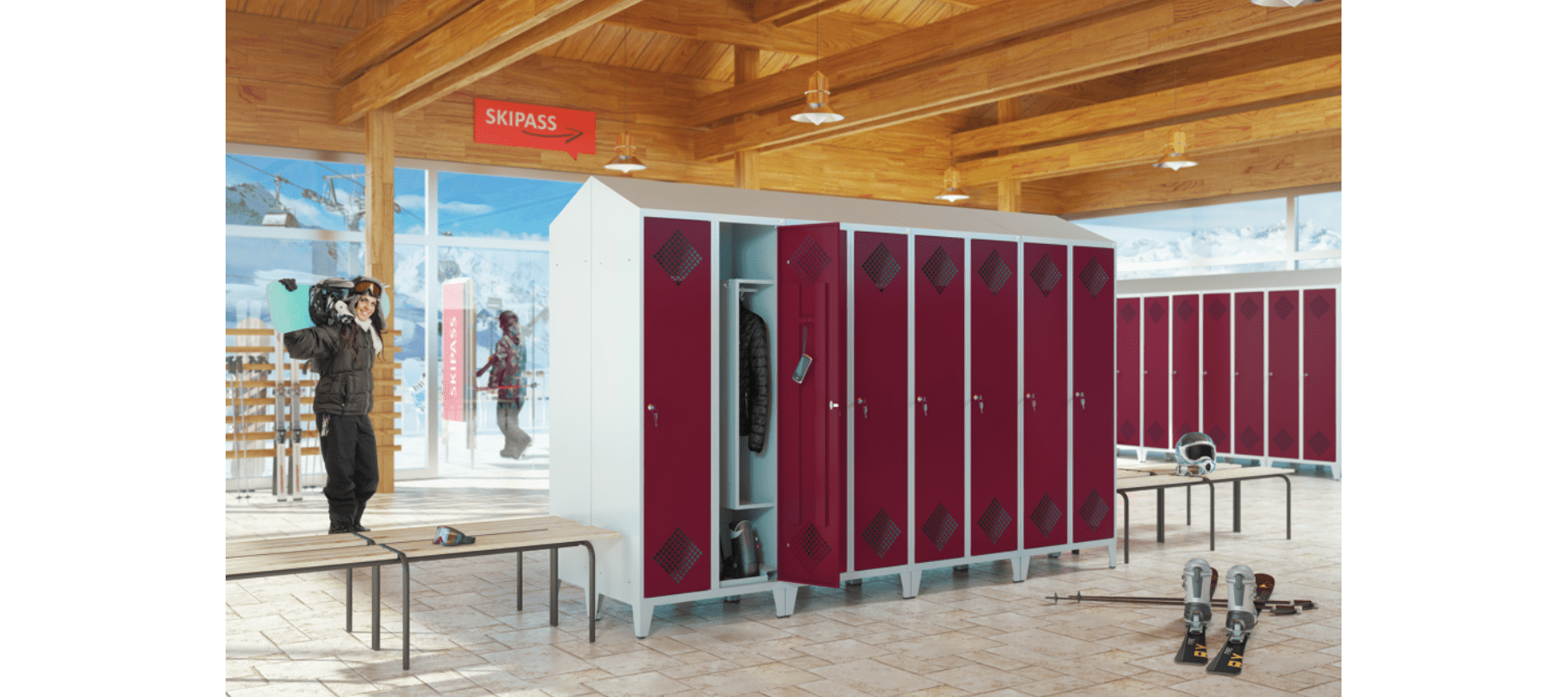 Wardrobe lockers allow to furnish social rooms in a functional and aesthetic way. Wide range of products guarantees fulfilling even the most varied users’ needs. A modern design perforation system allows free air circulation. Welded construction based on closed profiles affects the rigidity of the lockers.