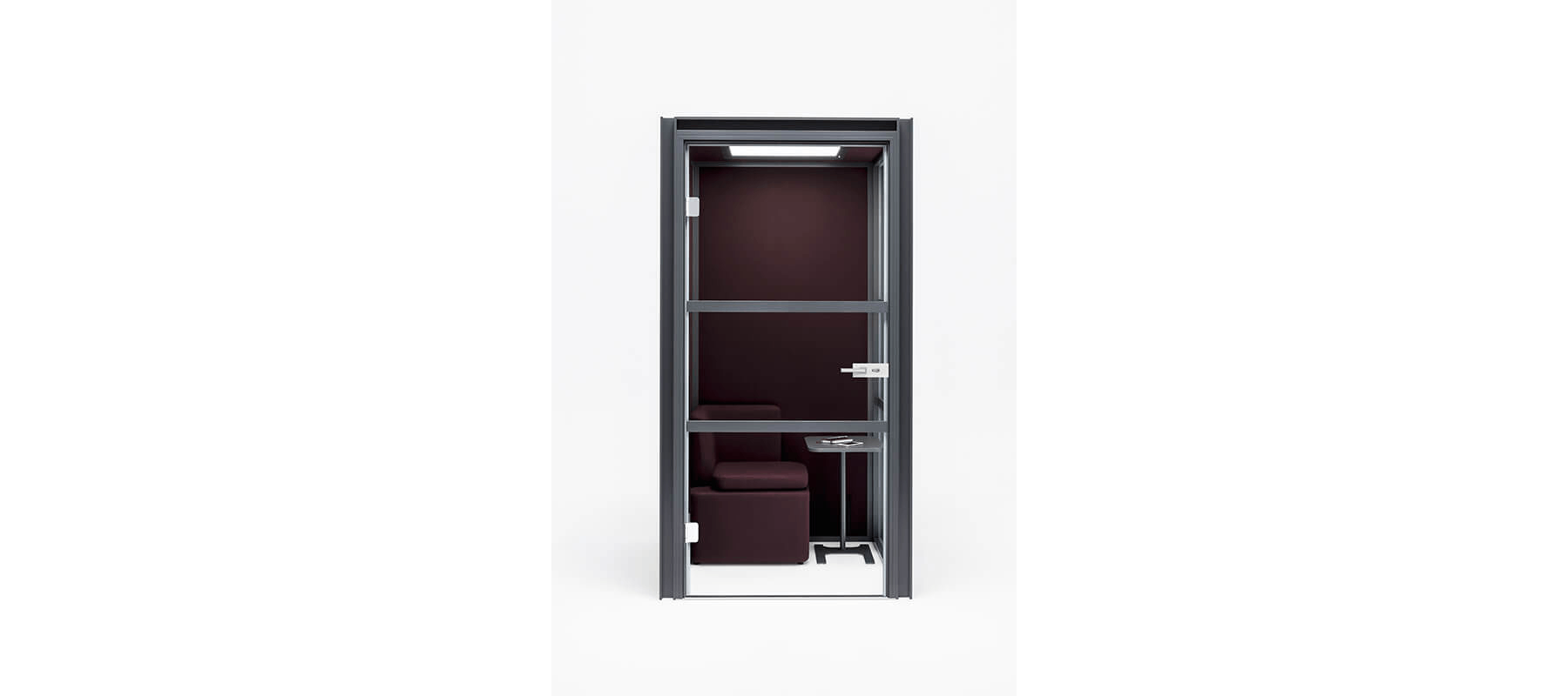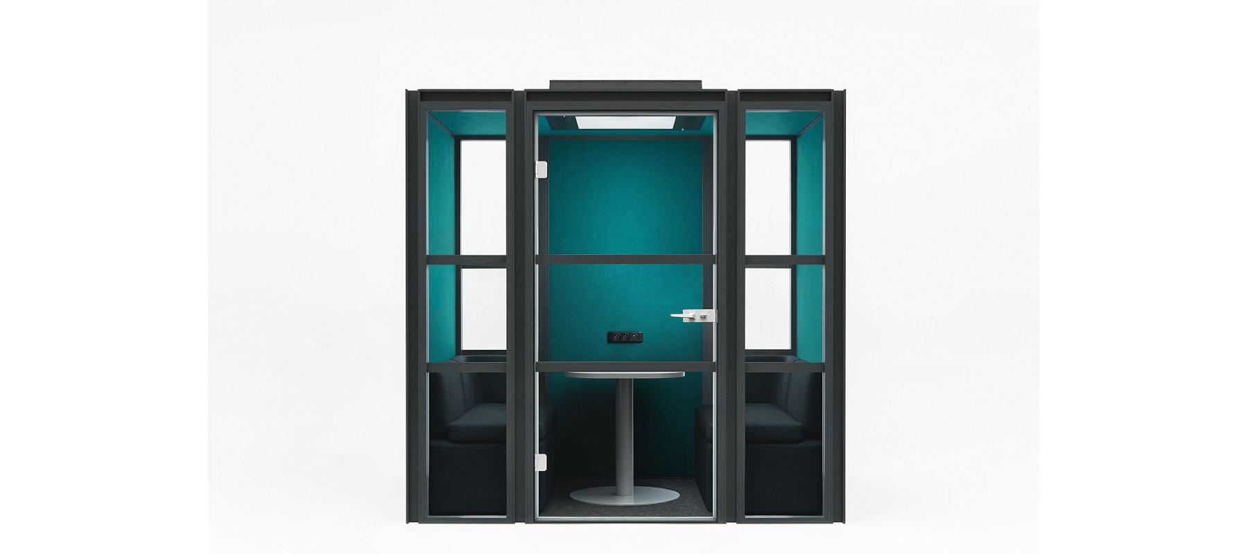 Zainspirowane architekturą przemysłową i industrialnym klimatem – budka akustyczna Hako wspiera dźwiękową jakość współczesnych przestrzeni biurowych. Jej nazwa w języku japońskim oznacza „pudełko”, co nawiązuje do tradycyjnej w architekturze tego regionu kratki i podkreśla modułowość konstrukcji. Przemyślany projekt umożliwił wyeliminowanie podłogi bez utraty stabilności. Zwiększa to mobilność, dopasowuje budkę do potrzeb osób niepełnosprawnych i ułatwia prowadzenie kabli. Hako to szeroka gama możliwości: biurowa budka telefoniczna w wersji podstawowej lub samodzielne całości architektoniczne powstałe z połączenia poszczególnych elementów. Oświetlenie i cichy wentylator wspierają komfort pracy. Budki akustyczne zapewniają prywatność rozmów oraz spotkań, umożliwiając skuteczne strefowanie bez konieczności stawiania trwałych ścian.