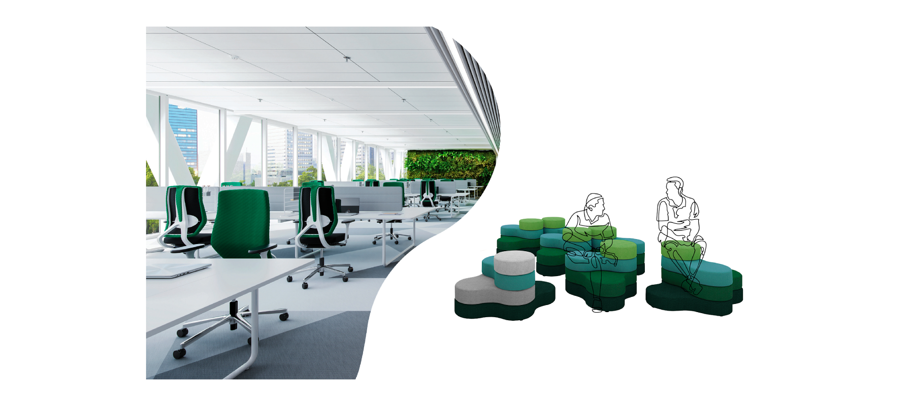 Linia puf Tapa została stworzona z myślą o uzupełnieniu przestrzeni biurowych, recepcyjnych oraz stref typu „breakout”. Ich unikalny design nadaje charakter wnętrzu, tworząc atrakcyjną i wygodną strefę spotkań nieformalnych. Modułowa konstrukcja puf umożliwia zmianę konfiguracji i układów.