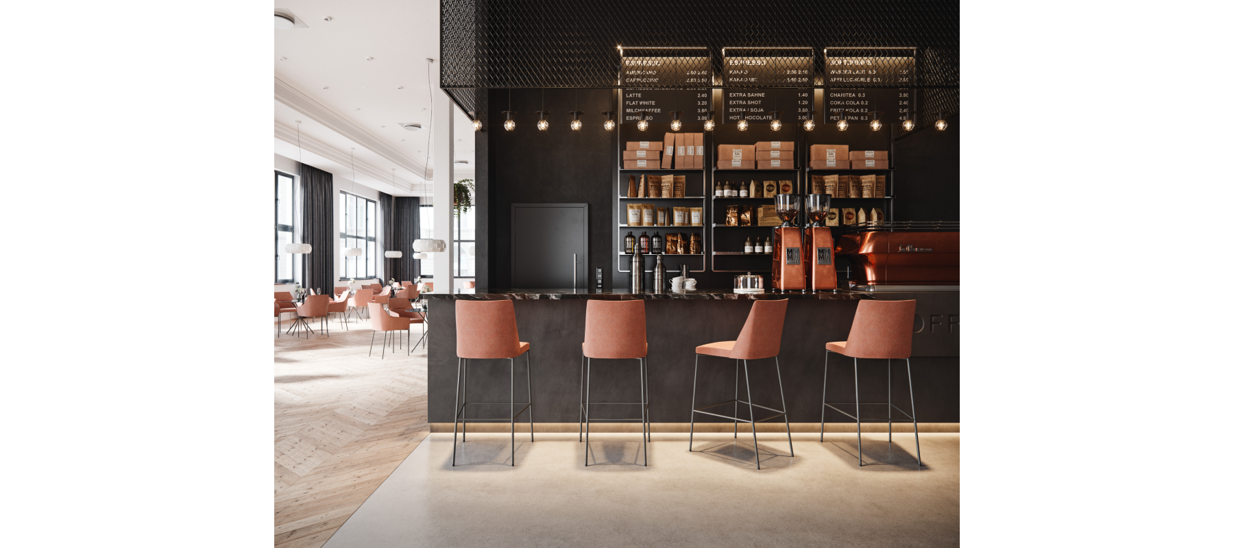 Krzesła dedykowane są do kawiarni, przestrzeni restauracyjnych, poczekalni lub hotelowych lobby. Są kompaktowe, proste i klasyczne w swojej formie. W kolekcji znajdziemy krzesło na cienkim metalowym stelażu, w wersji na drewnianych nogach lub na aluminiowej bazie 4-ramiennej.